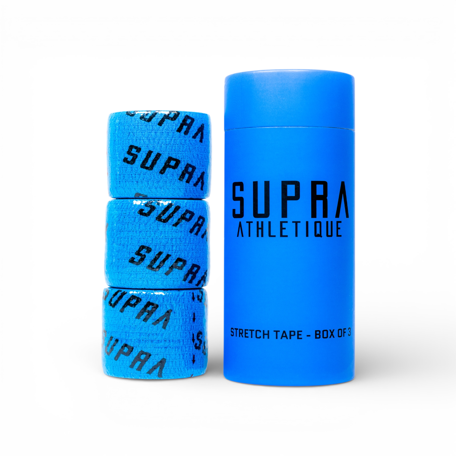 Its strong adhesive ensures the tape stays securely in place, even during the most high-intensity workouts. Available in three colors (black & Blue), Supra Stretch Tape lets you train with both performance and style.